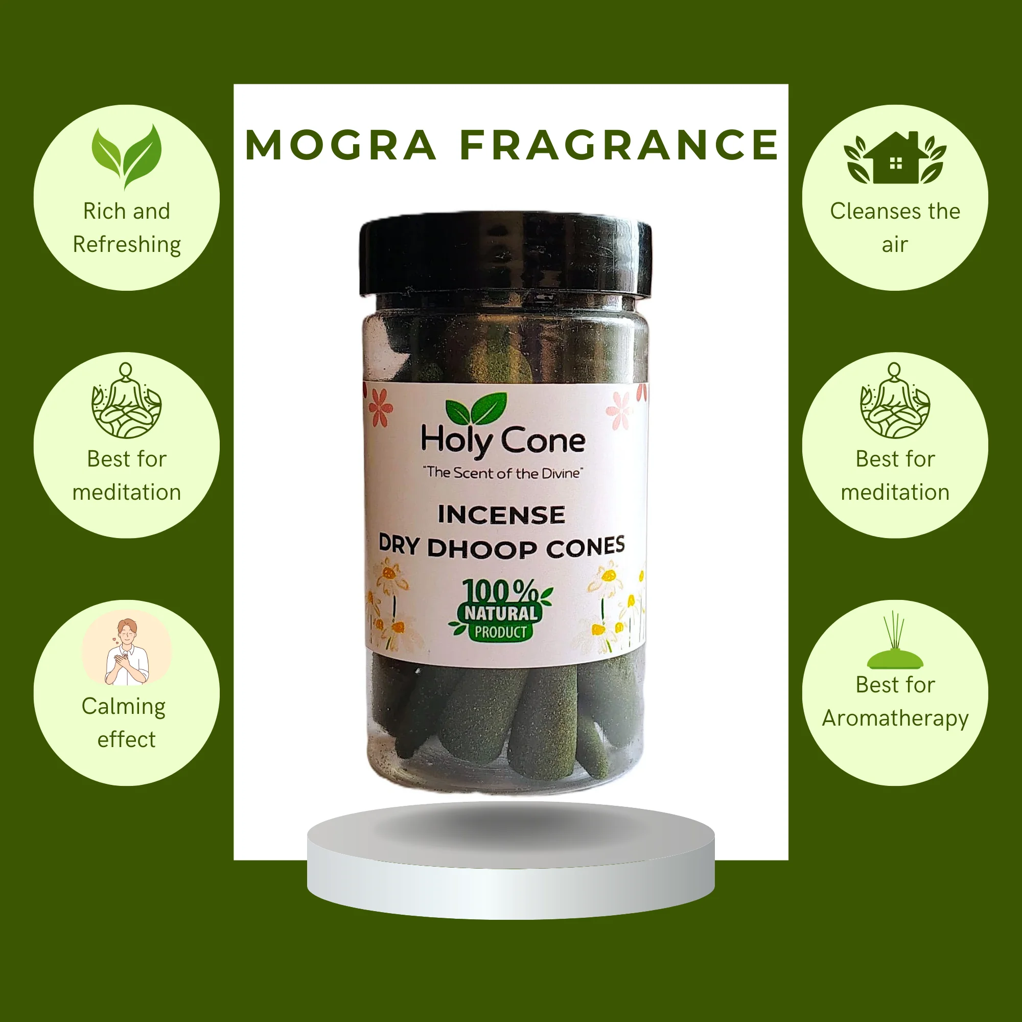 Holycone Incense Organic Dry Dhoop Cone | 100% Natural | Scent Fragrance | No Charcoal | No Bamboo | Pooja Dhup Cones (Pack of 2) (Mogra)